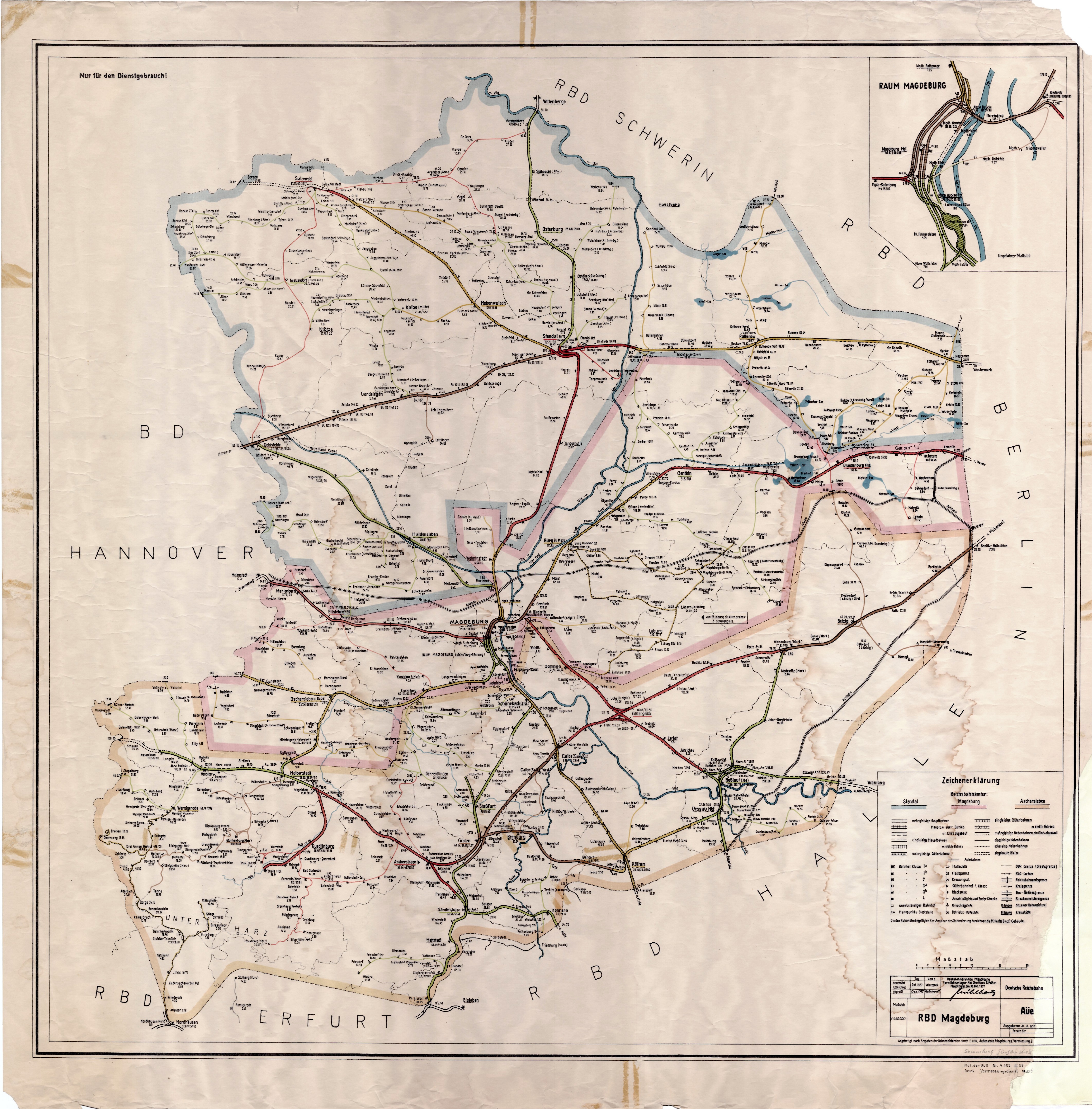 Karte der Rbd Magdeburg 1957