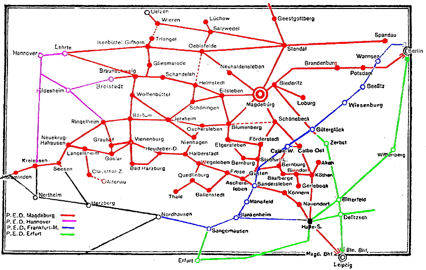 Die Strecken der ehemaligen RBD Magdeburg nach der Aufteilung 1931.